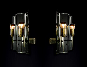 Gino Paroldo Sconces in Brass and Curved Glass, Italy 1950sSchool: