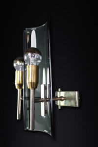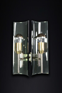 Mid century modern Gino Paroldo Sconces in Brass and Curved Glass, Italy 1950s Mid-20th century