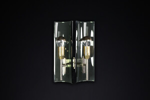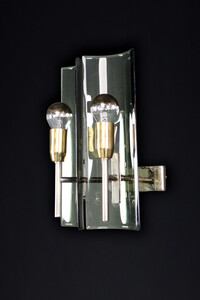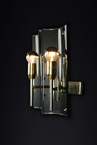 28 cm (11.02 inch)Mid century modern Gino Paroldo Sconces in Brass and Curved Glass, Italy 1950s, Mid-20th century, in good condition, for sale in Lighting, Sconces & Flushmount | Davidowski