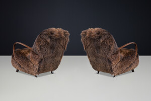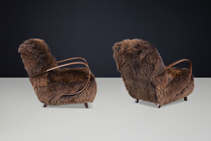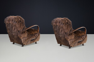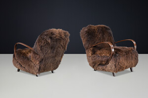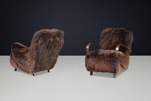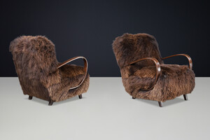 1940s Jindřich Halabala Lounge Chair in Dutch Sheepskin, Sculptural BentwoodOrigin: