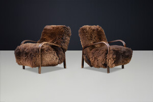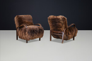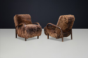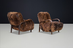 1940s Kozelka & Kropacek Armchairs in Sheepskin & Patinated FrameOrigin: