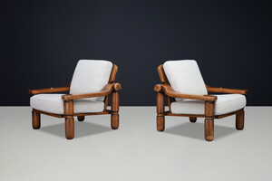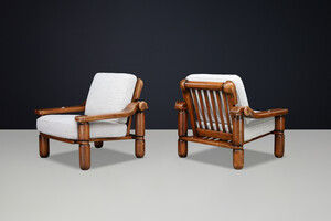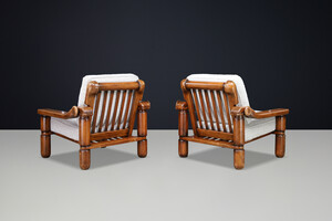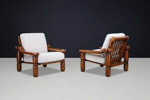 Brutalist Sculptural Solid Wood Lounge Chairs Italian Adjustable Armchairs 1970s Late-20th century