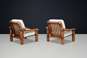 Brutalist Sculptural Solid Wood Lounge Chairs Italian Adjustable Armchairs 1970sOrigin: