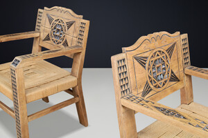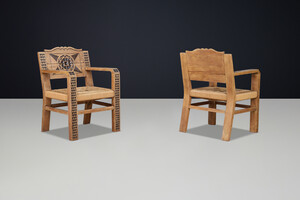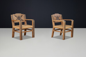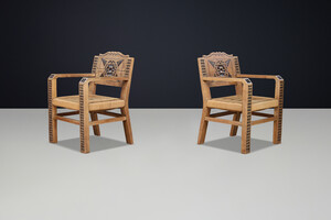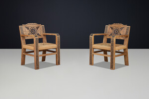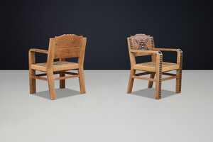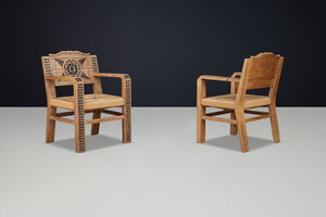 Hand-Carved Oak Armchairs, in the Manner of Joseph Savina, France 1930Origin: