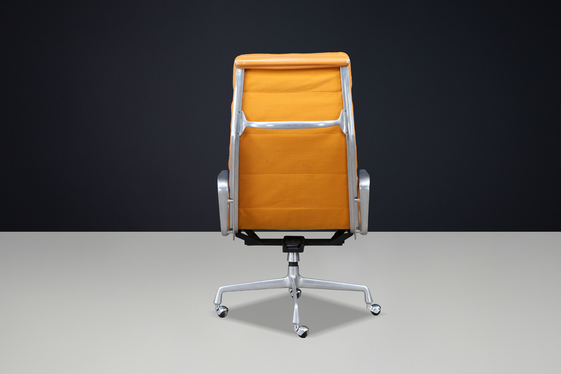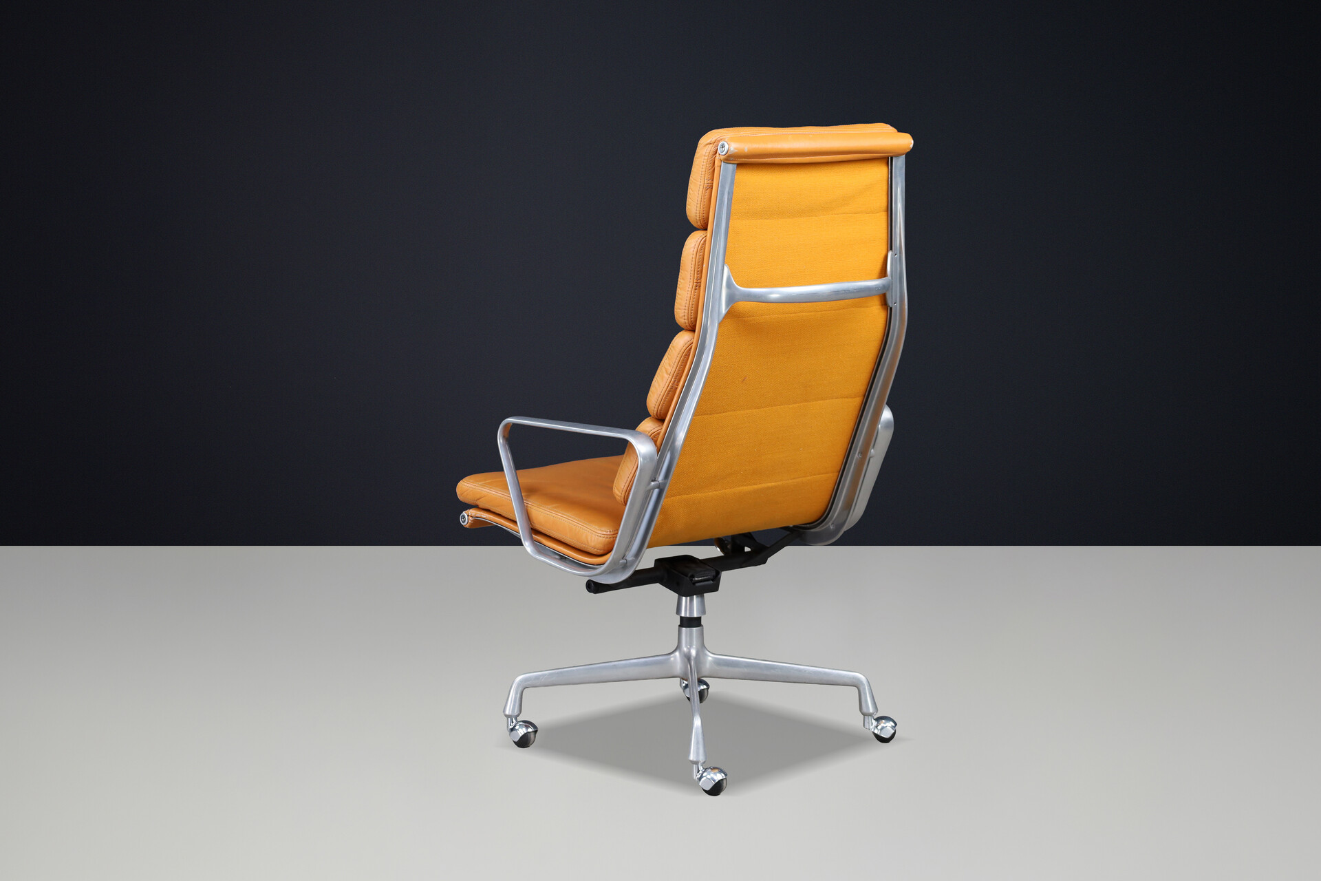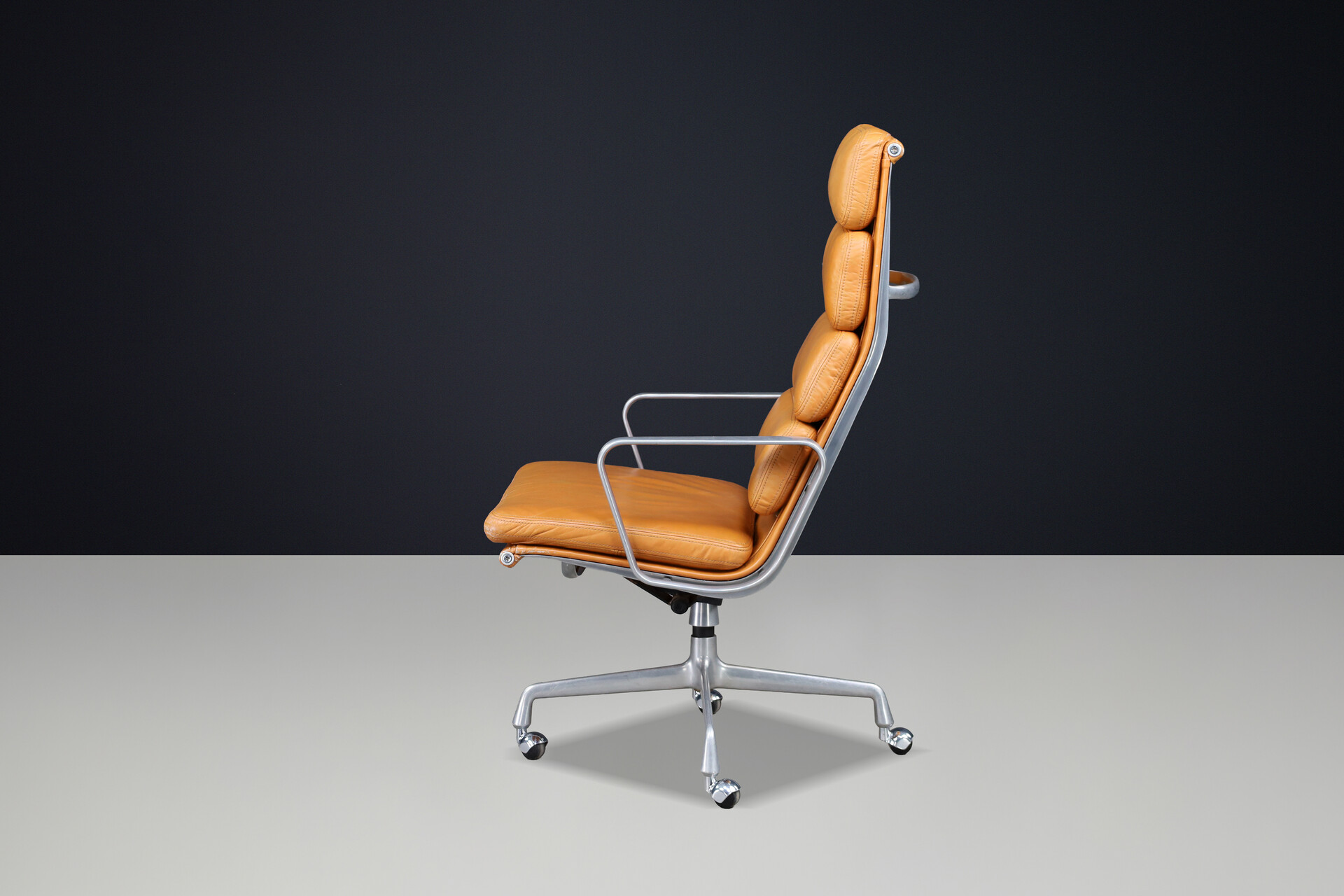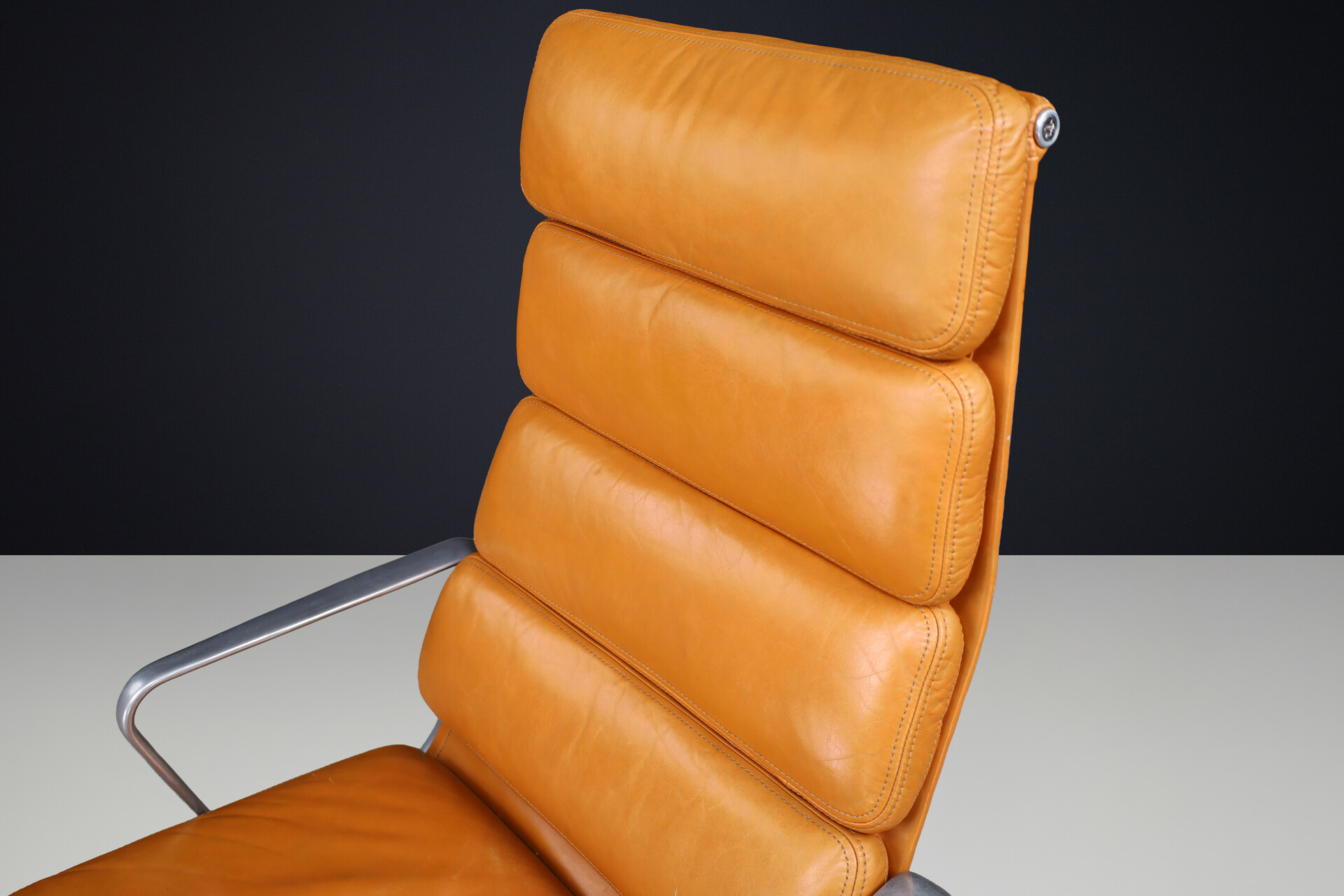 48 cm (18.90 inch)Mid century modern Soft Pad Executive Chair for Herman Miller in Cognac Leather and Aluminum, USA 1970s, Late-20th century, in good condition, for sale in Seating, Armchairs & Lounge chairs | Davidowski