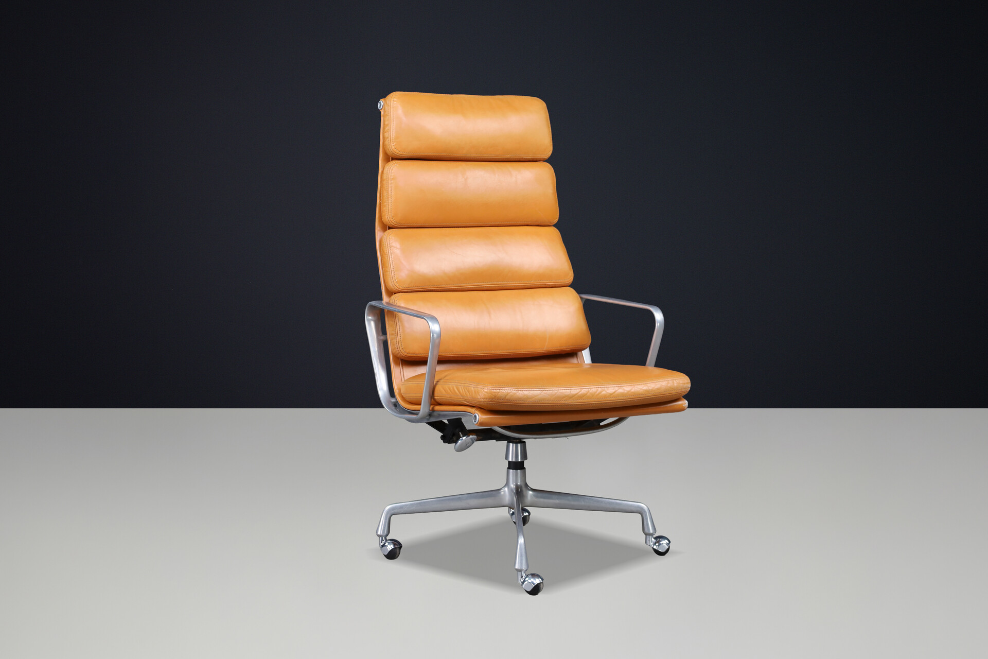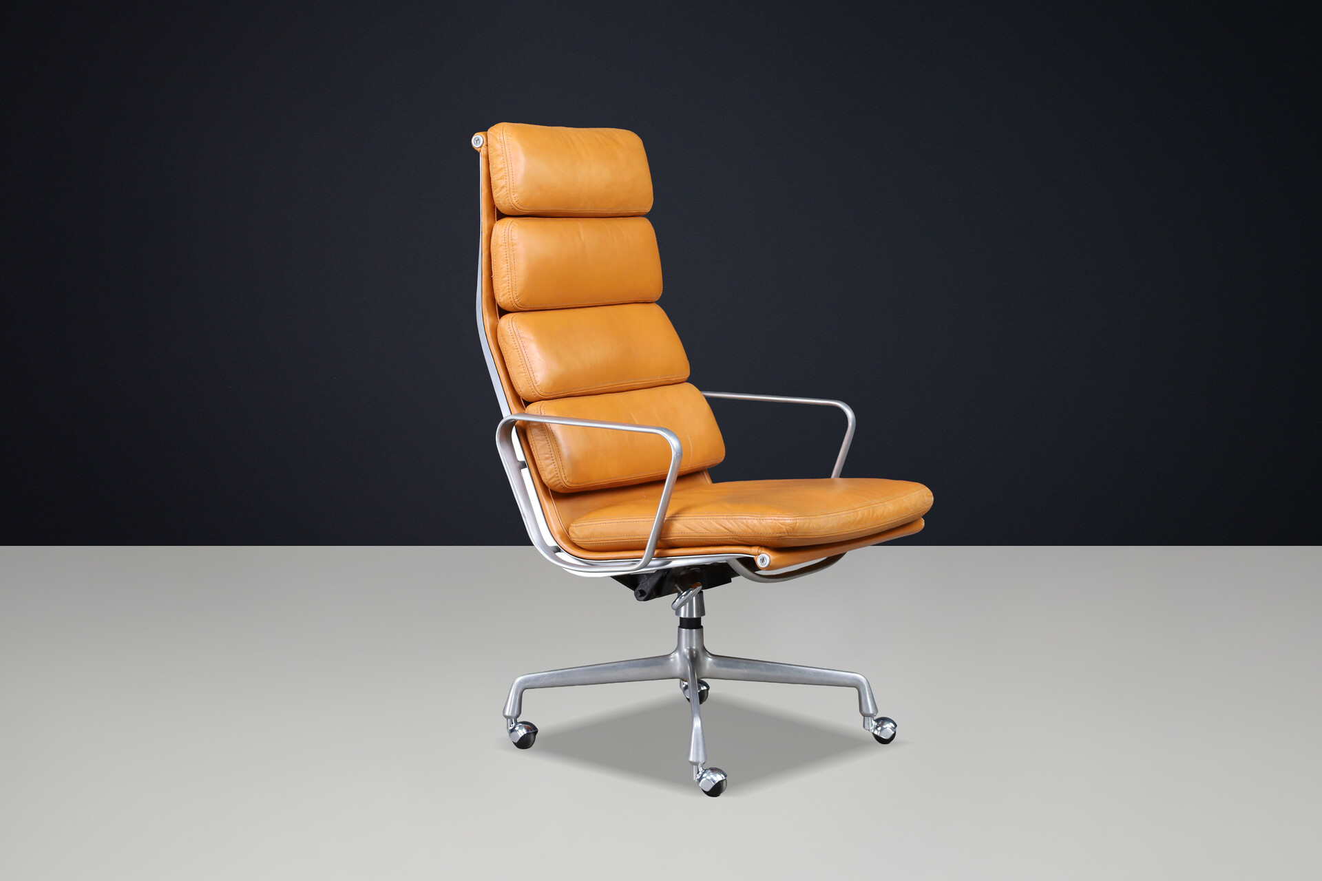 Soft Pad Executive Chair for Herman Miller in Cognac Leather and Aluminum, USA 1970sSchool: