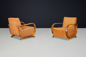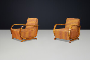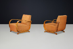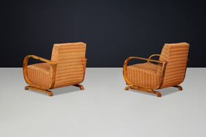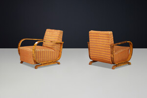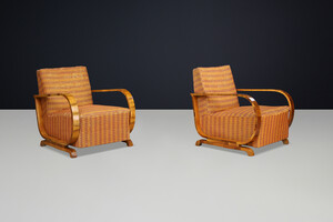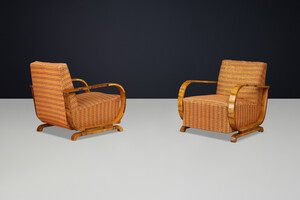 Italian Art Deco Walnut Armchairs with Curved Frames, Italy 1930s Early-20th century