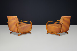Italian Art Deco Walnut Armchairs with Curved Frames, Italy 1930sOrigin: