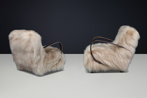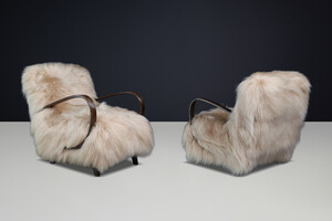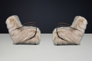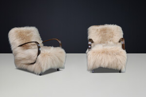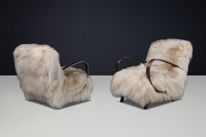 Jindřich Halabala Lounge Chairs in Icelandic Sheepskin, Sculptural CZ 1940sOrigin: