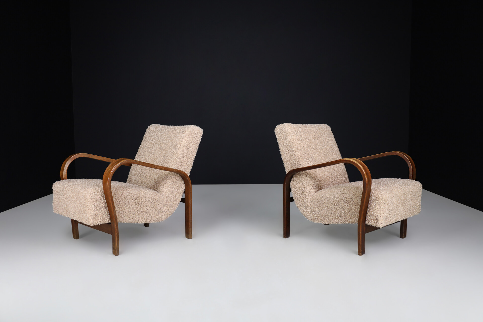 Bentwood Armchairs in Re-Upholstered Fabric by Karel Kozelka & Antonin Kropá, 1950sSchool: