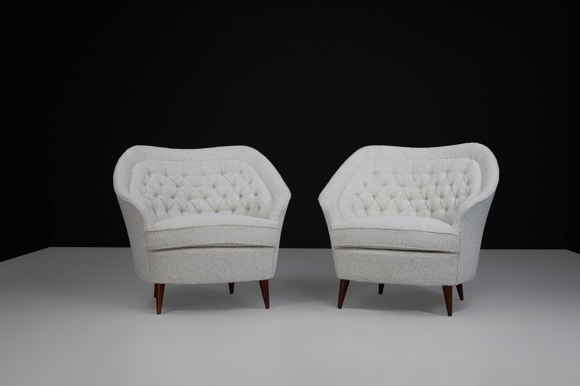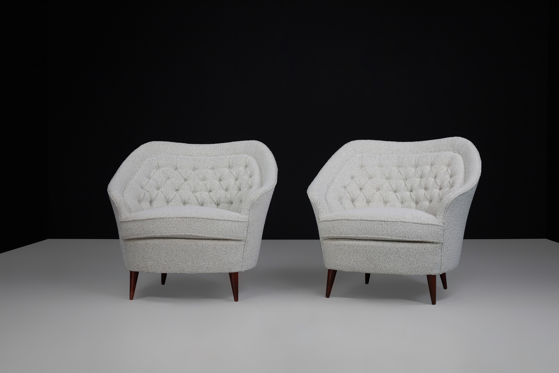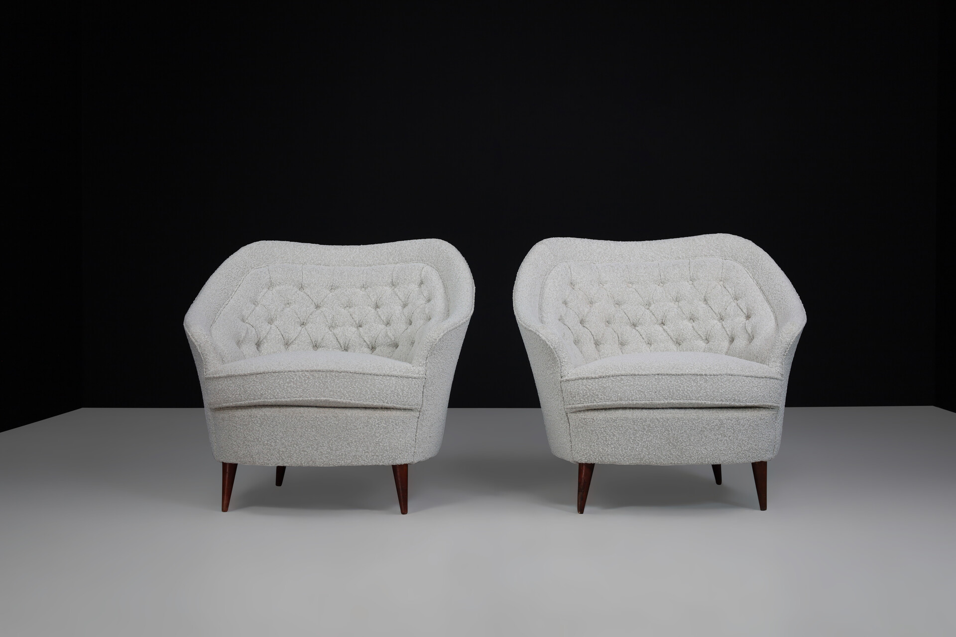 Mid century modern Lounge chairs in New Bouclé Fabric By Gio Ponti For Casa E Giardino,Italy 1940s Mid-20th century