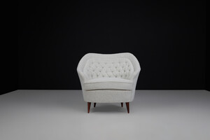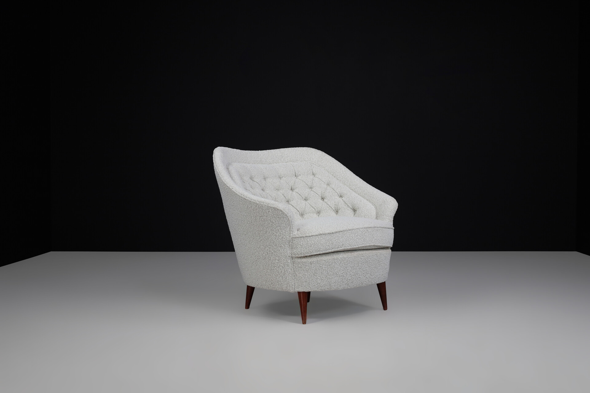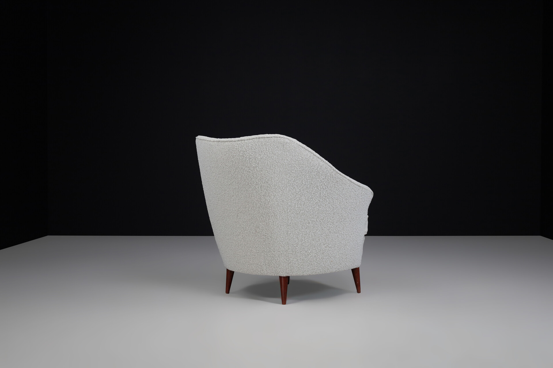 43 cm (16.93 inch)Mid century modern Lounge chairs in New Bouclé Fabric By Gio Ponti For Casa E Giardino,Italy 1940s, Mid-20th century, in good condition, for sale in Seating, Armchairs & Lounge chairs | Davidowski