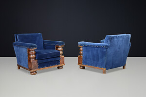 Monumental 1930s French armchairs Château-scale proportions Patinated Walnut Early-20th century