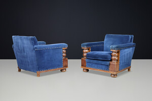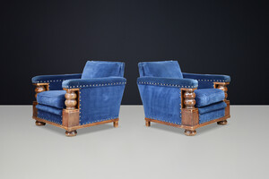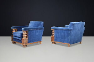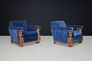Monumental 1930s French armchairs Château-scale proportions Patinated WalnutOrigin: