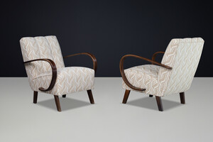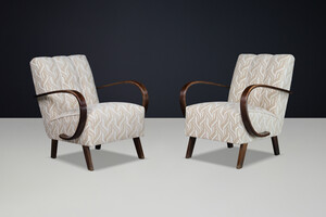 Pair of Jindrich Halabala Bentwood Lounge Chairs, Art Deco, 1940s PraqueOrigin: