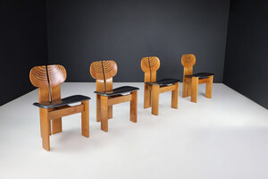 Mid century modern Afra & Tobia Scarpa For Maxalto Set Of Four 'Africa' Dining Chairs and Angelo Mangiarotti For Skipper 'Eros' Round Dining Table In Marquina Marble, Italy 1970s Late-20th century