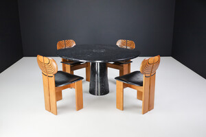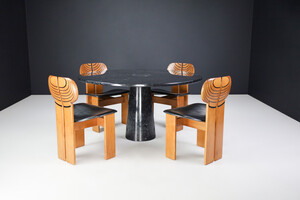 Afra & Tobia Scarpa For Maxalto Set Of Four 'Africa' Dining Chairs and Angelo Mangiarotti For Skipper 'Eros' Round Dining Table In Marquina Marble, Italy 1970sSchool: