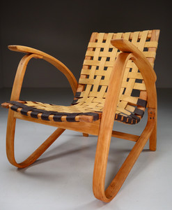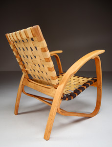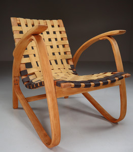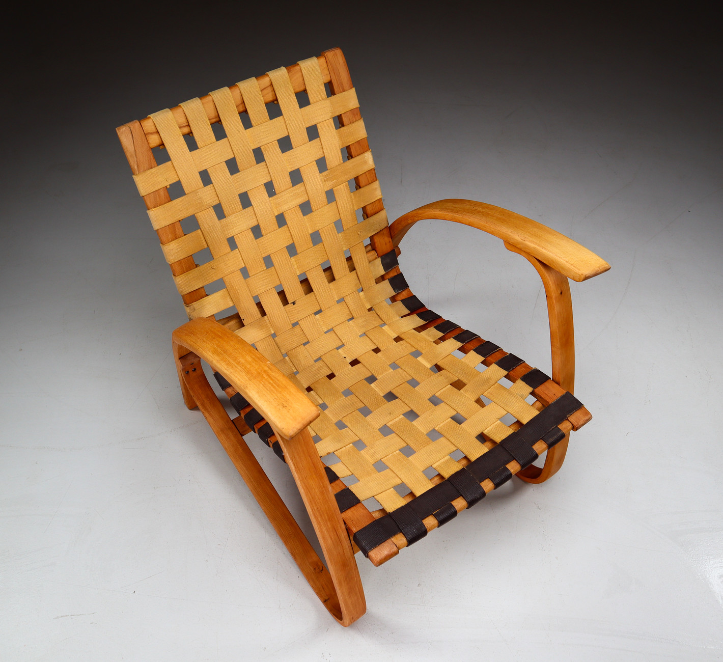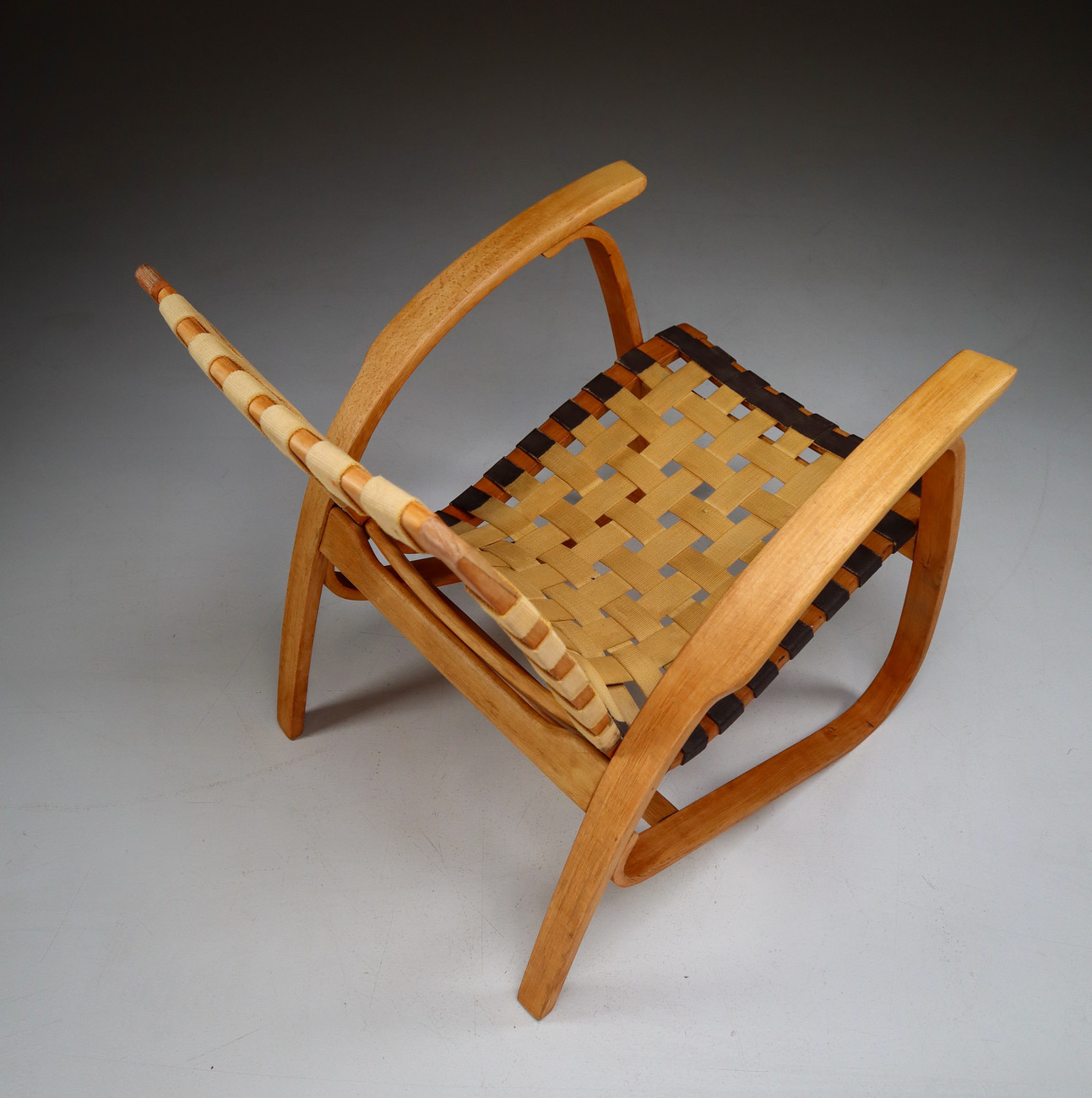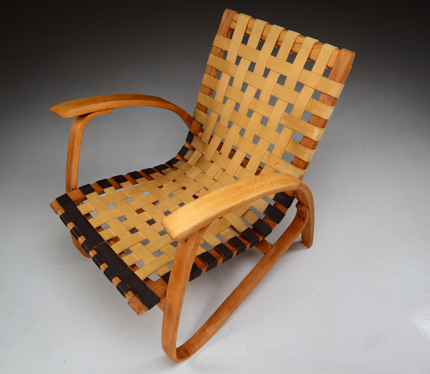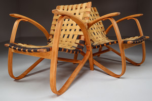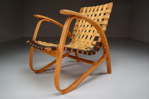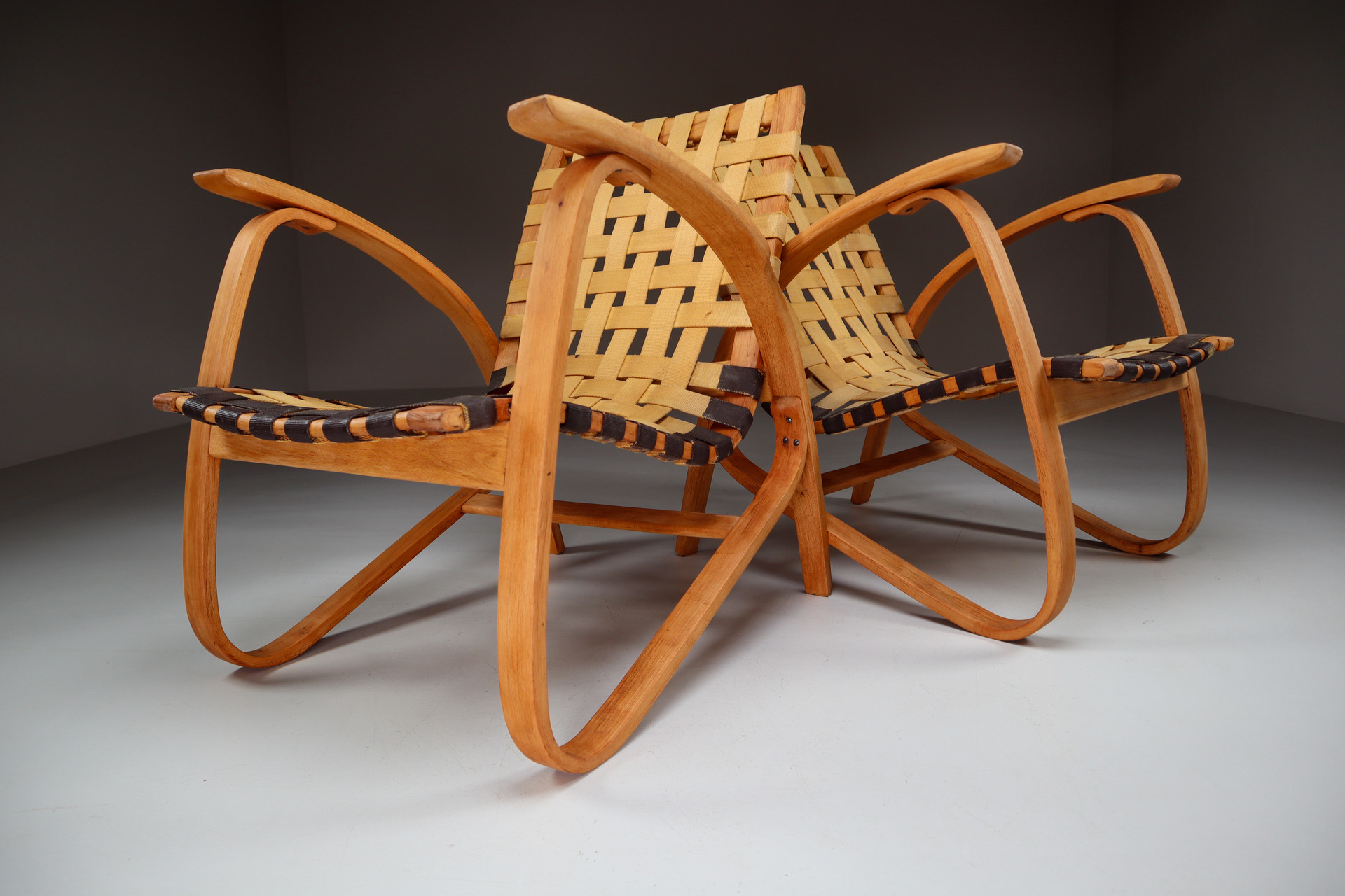 1930s Jan Vanek Bentwood Lounge Armchairs with Woven Straps in Blond PatinaDate of Manufacture: