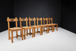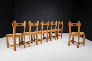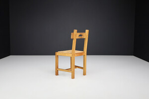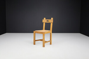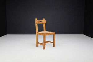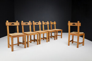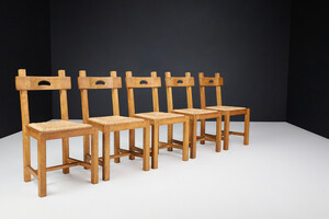 Brutalist Dining Chairs in Oak and Rush, France 1960s Mid-20th century