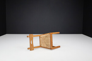 46 cm (18.11 inch)Brutalist Dining Chairs in Oak and Rush, France 1960s, Mid-20th century, in good condition, for sale in Seating, Chairs and Stools | Davidowski