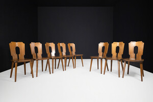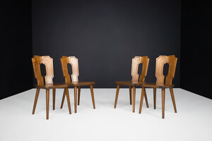 Brutalist Modern wooden dining chairs, France 1960s Mid-20th century
