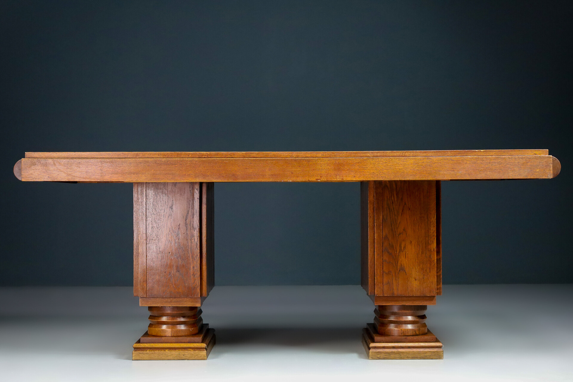 76 cm (29.92 inch)French Art Deco Extendable (+100 cm ) Table In Oak By Charles Dudouyt , France 1940s, Mid-20th century, in good condition, for sale in Tables, Dining tables | Davidowski