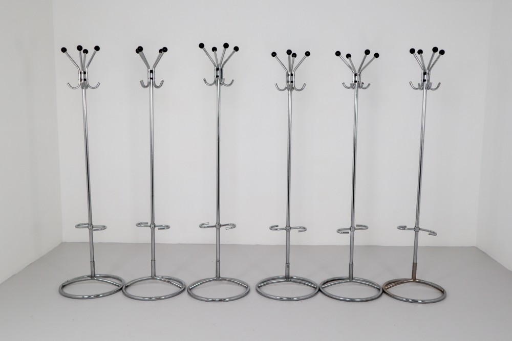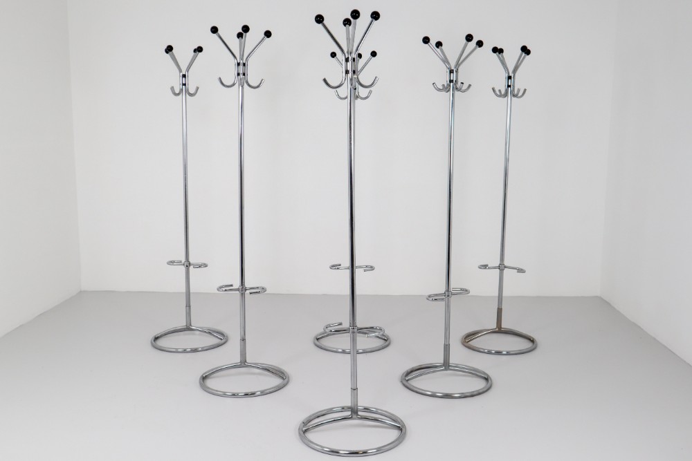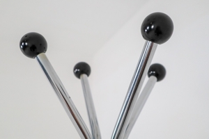183 cm (72.05 inch)Elegant and functional chrome ball coat hooks coat racks umbrella Stand from Bauhaus Mid-Century Modern era. These Bauhaus coat racks were purchased from a hotel in Prague, Czech Republic . In very good condition. 6 items available.