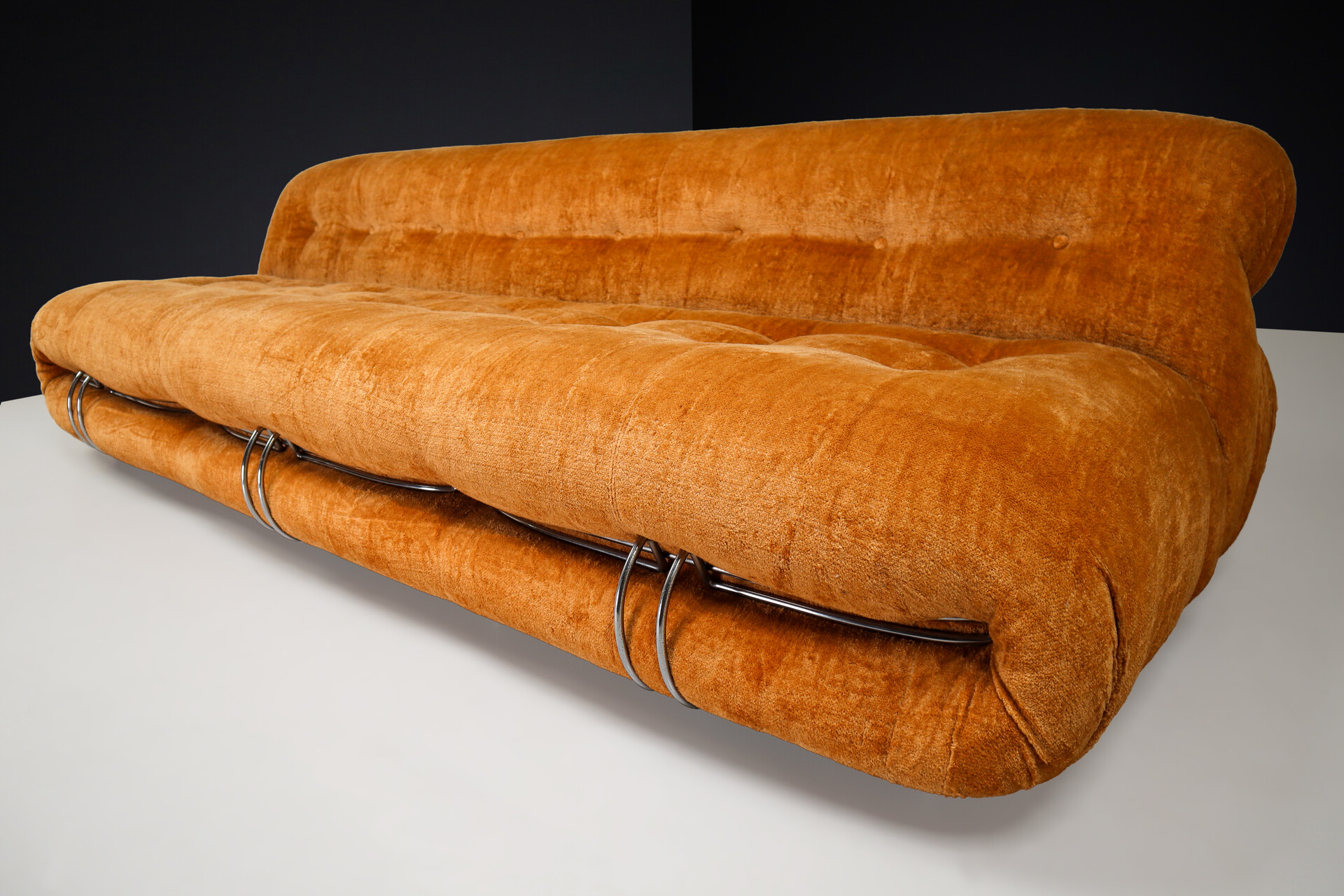 39 cm (15.35 inch)Large "Soriana" Sofa by Afra & Tobia Scarpa for Cassina in Original Gold Fabric, Italy 1969, Mid-20th century, in excellent condition, for sale in Sold | Davidowski
