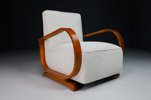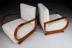 Mid century modern Art-Deco Arm Chairs / lounge chairs With New Upholstered Bouclé Fabric, Italy 1930s Early-20th century