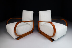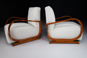 Art-Deco Arm Chairs / lounge chairs With New Upholstered Bouclé Fabric, Italy 1930sSchool: