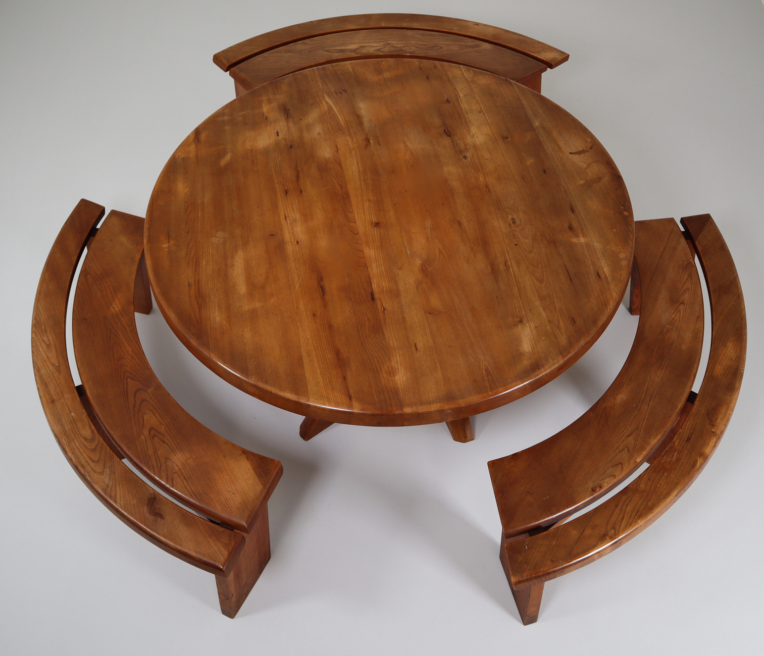 Wear consistent with age and useMid century modern Elm Pierre Chapo Midcentury T21 Sfax Elm Dining Table and Three S38A Benches France 1960s in Elm, Mid-20th century, in good condition, for sale in Tables, Dining tables | Davidowski