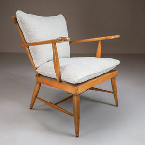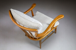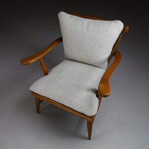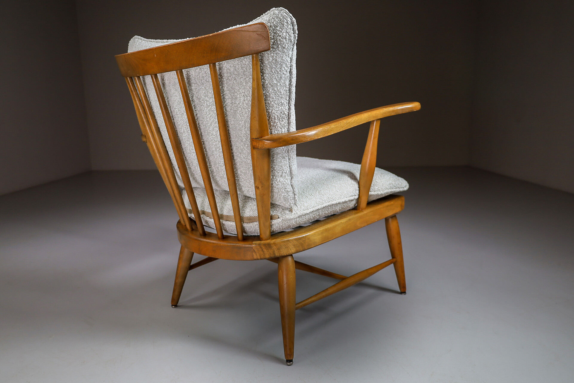 Mid century modern Mid-Century Walnut Armchairs Designed by Anna-Lülja Praun in Austria in new upholstery boucle fabric1950s Mid-20th century