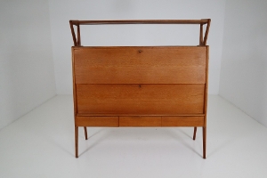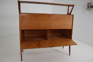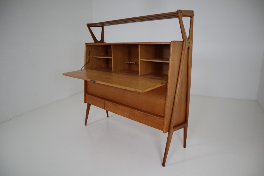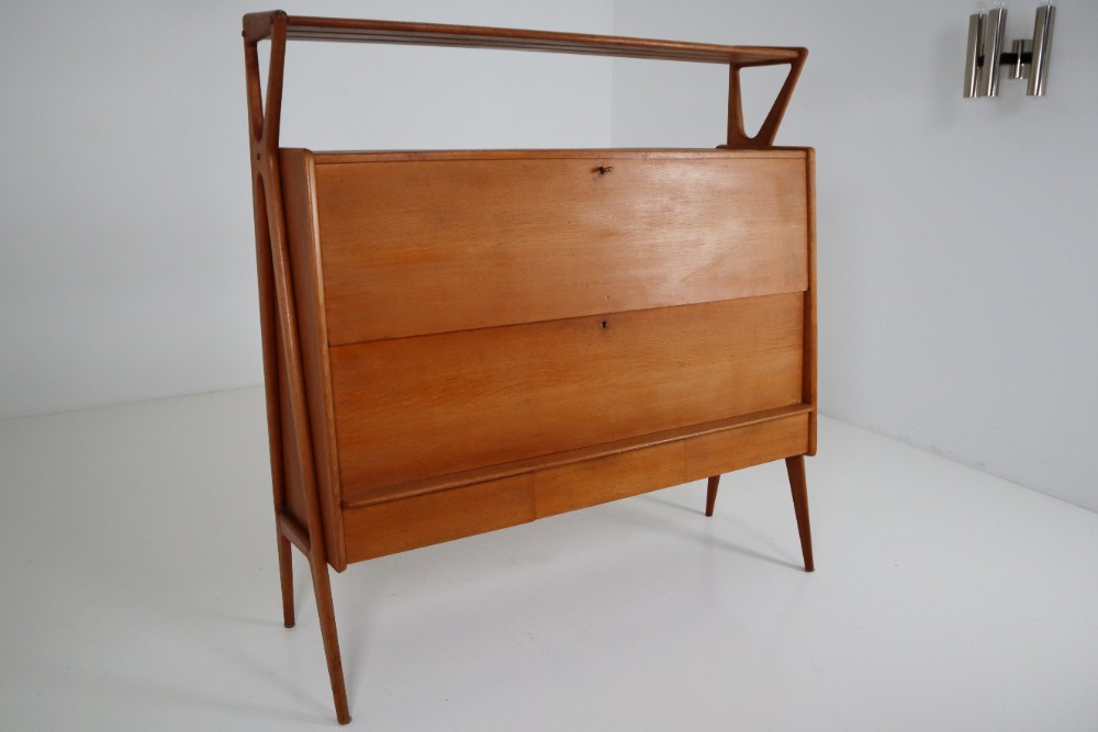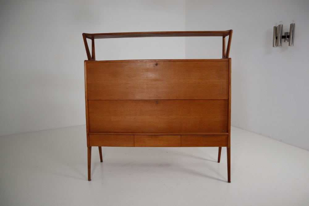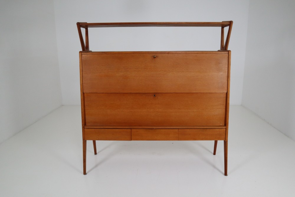Mid century modern Oak Bar Cabinet by Louis Paolozzi for René Godfroid in Oak, Mid-20th century, in good condition, for sale in Storage, Storage Cabinets | Davidowski