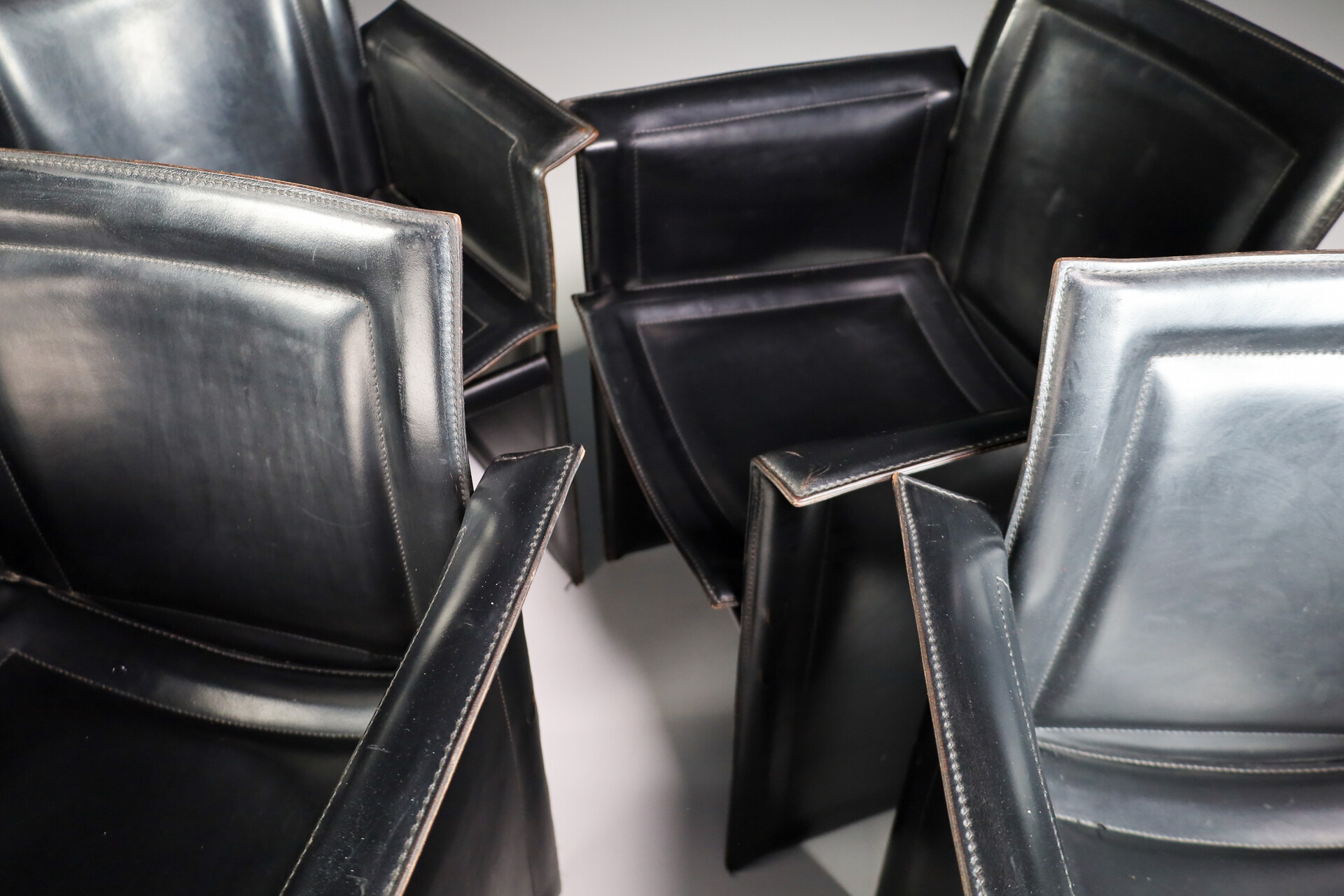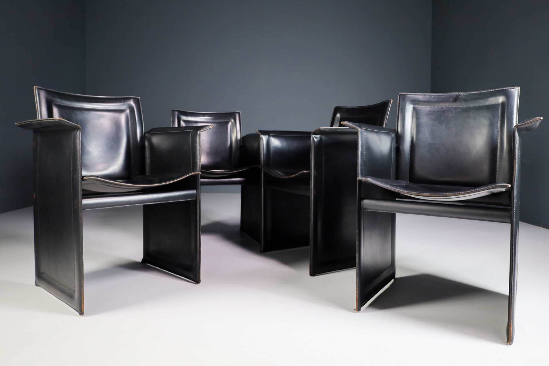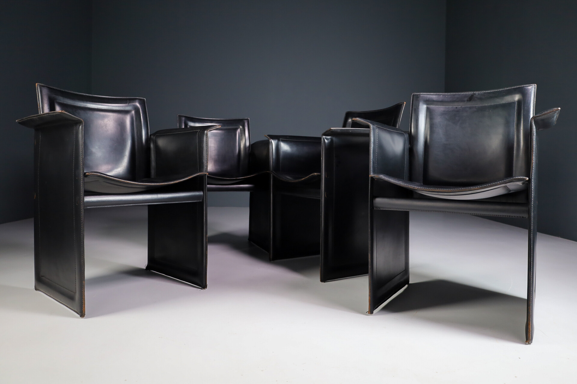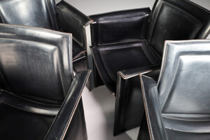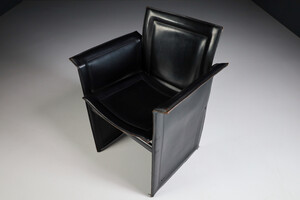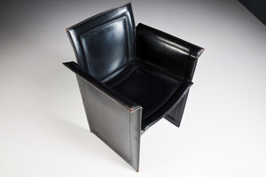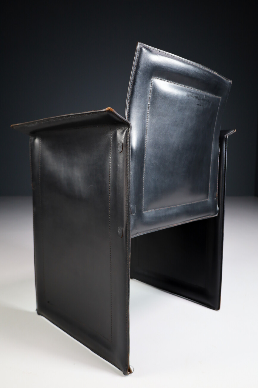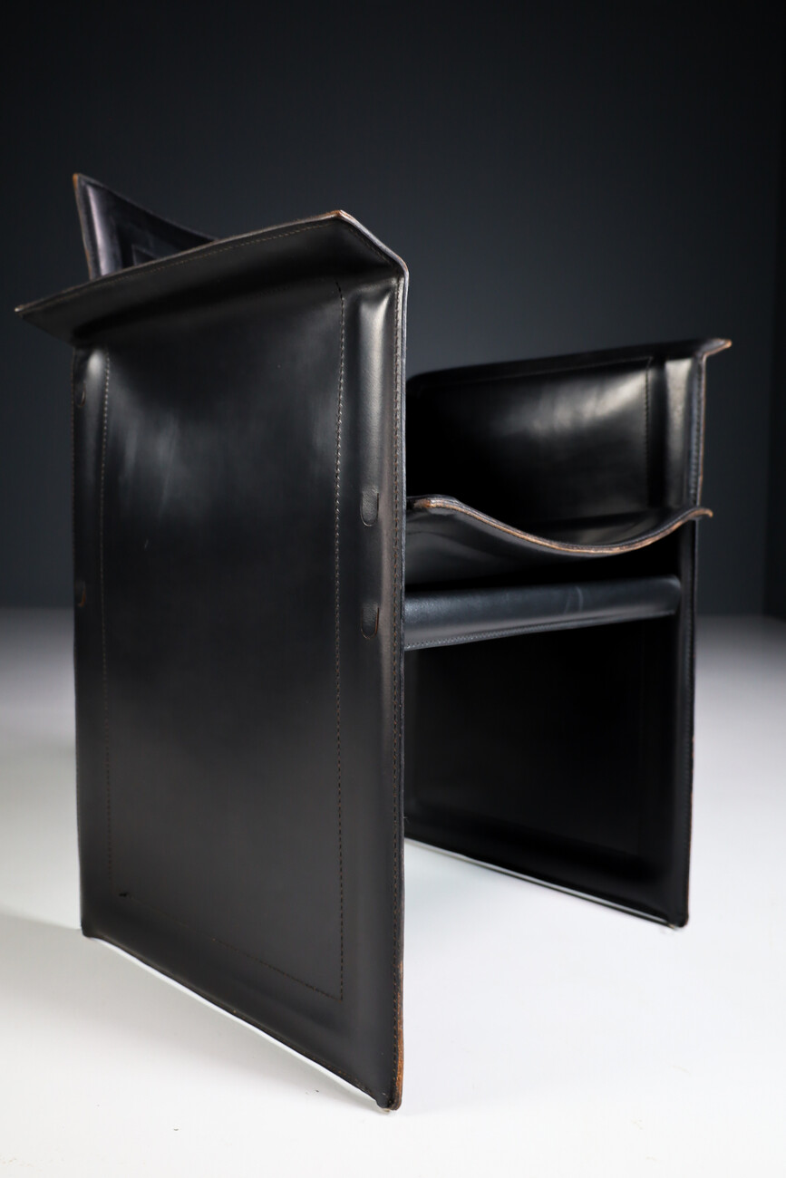 Mid century modern Set of 4 Tito Agnoli for Matteo Grassi "Korium" Black Leather Armchairs Italia 1970s Late-20th century