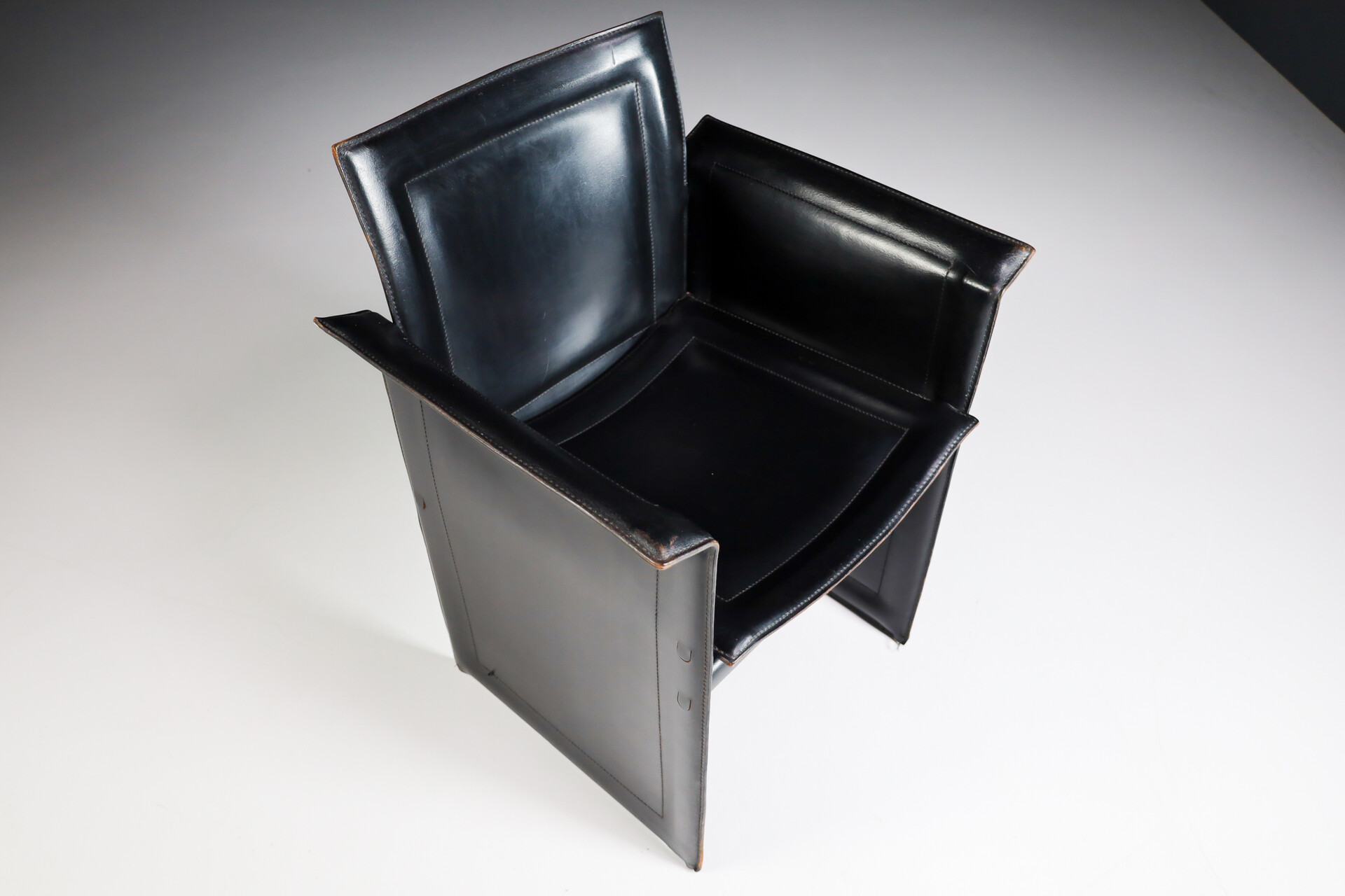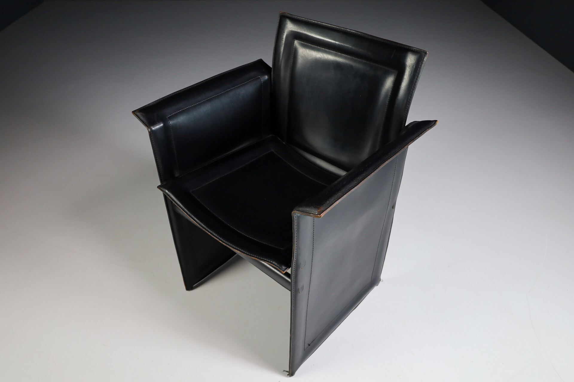 4 cm ( 1.57 inch)Mid century modern Set of 4 Tito Agnoli for Matteo Grassi "Korium" Black Leather Armchairs Italia 1970s, Late-20th century, in good condition, for sale in Seating | Davidowski