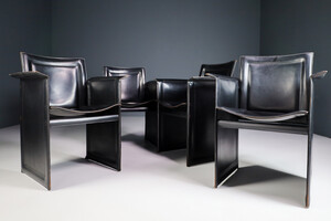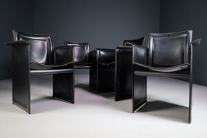 Set of 4 Tito Agnoli for Matteo Grassi "Korium" Black Leather Armchairs Italia 1970sSchool: