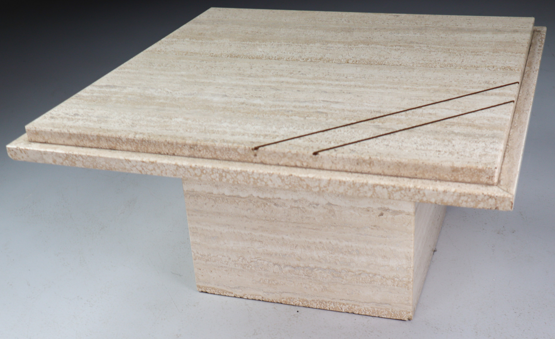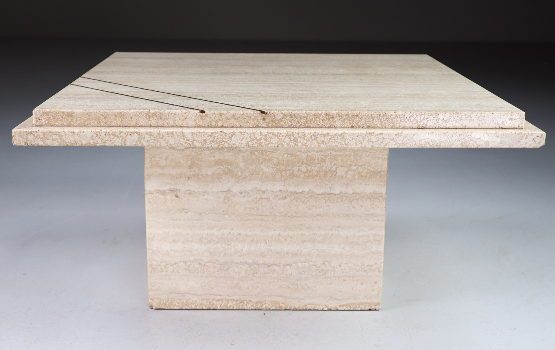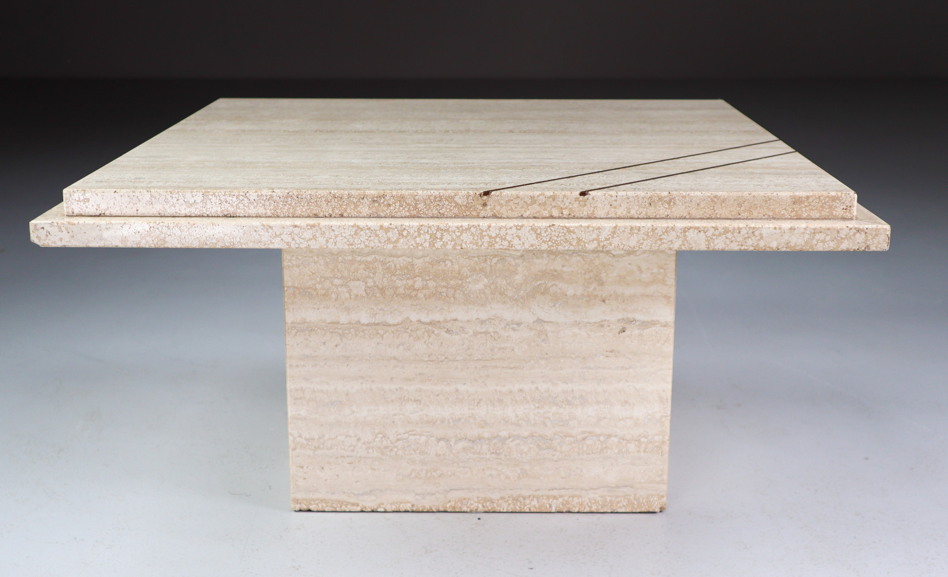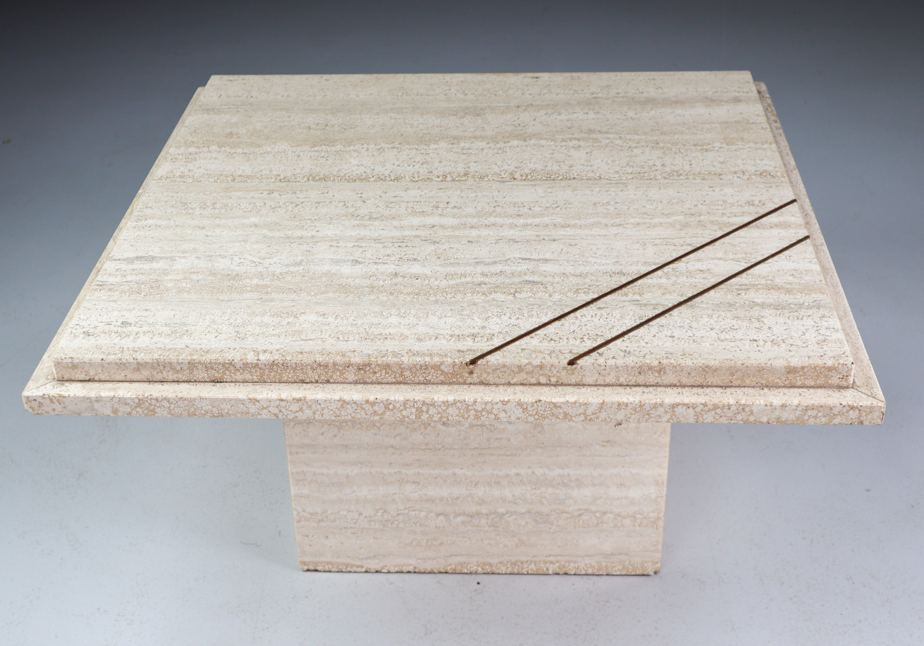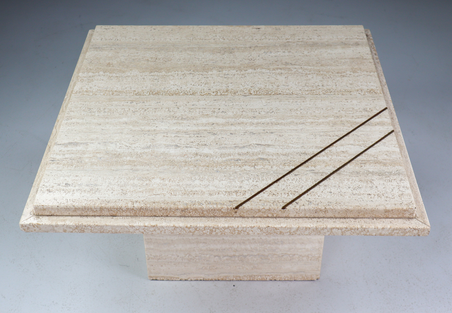 33 cm (12.99 inch)Midcentury Italian Travertine Coffee Table with copper 1970s, Mid-20th century, in good condition, for sale in Tables, Desk , Side and Coffee tables | Davidowski