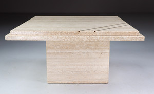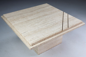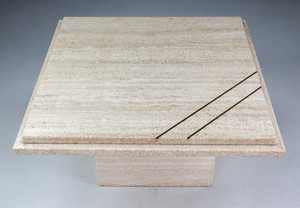 Midcentury Italian Travertine Coffee Table with copper 1970sDate of Manufacture: