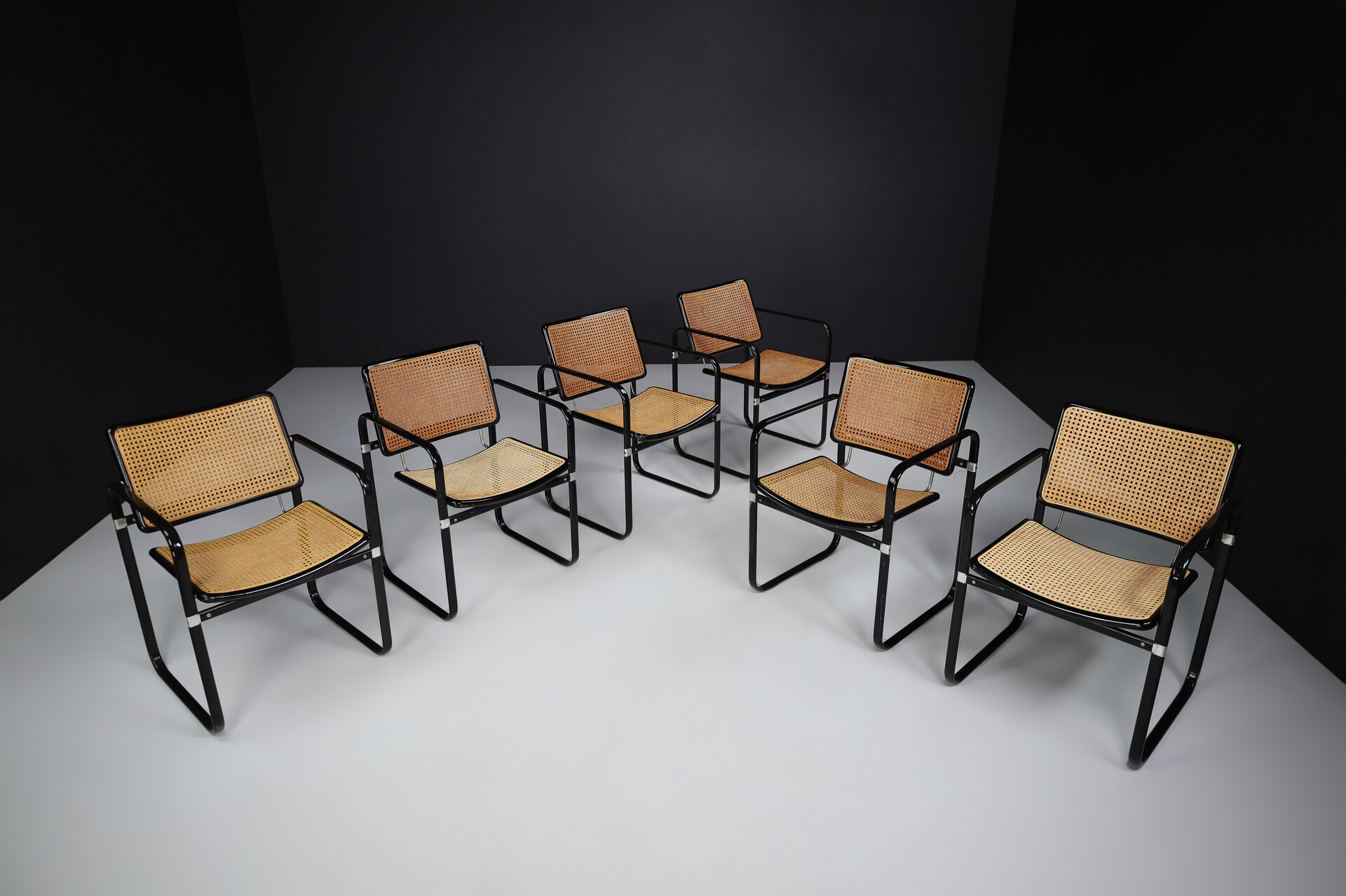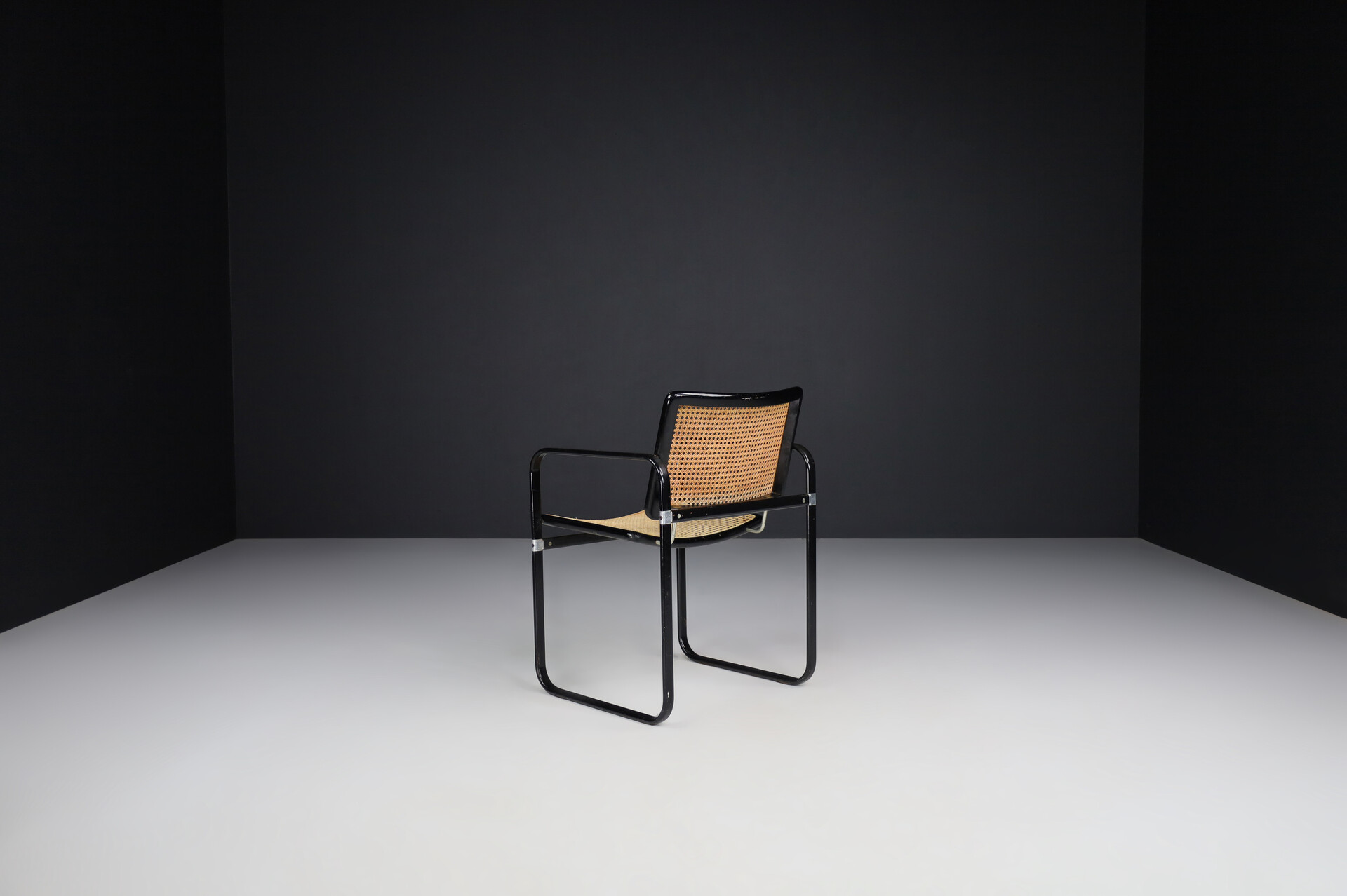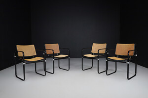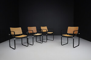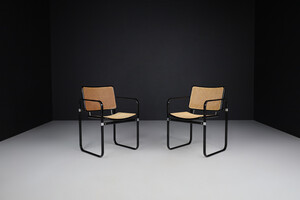 Modern Metal and cane armchairs, Italy 1980s, Late-20th century, in good condition, for sale in Seating, Armchairs & Lounge chairs | Davidowski
