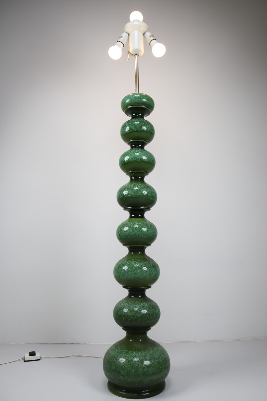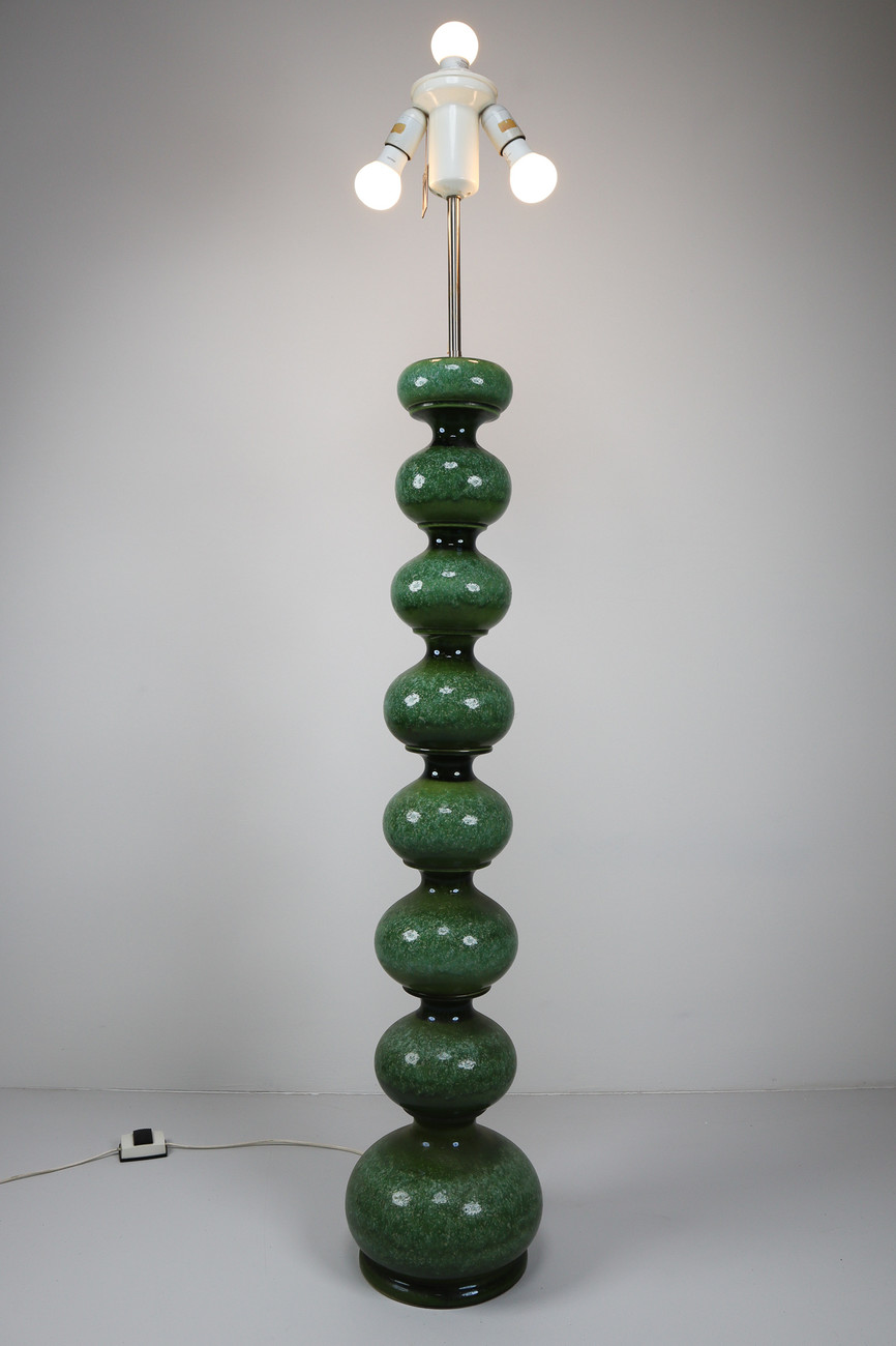 160 cm (62.99 inch)VINTAGE GERMAN LAMP FOR KAISER-LEUCHTEN IN GREEN CERAMIC, Mid-20th century, in good condition, for sale in Lighting, Table and Floor lamp | Davidowski