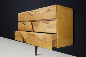 Italian Architectural Wall-Mounted Chest, Gio Ponti Style, Brass Leg, 1960sSchool: