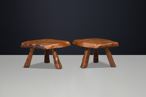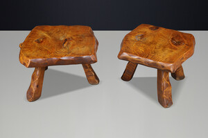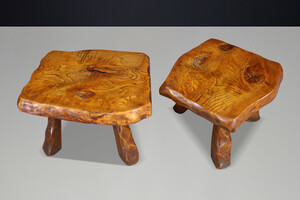 Brutalist Solid Elm Side Tables, Set of 2, France, 1960sOrigin: