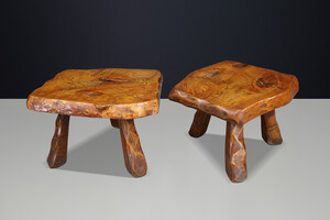Brutalist Solid Elm Side Tables, Set of 2, France, 1960s Mid-20th century