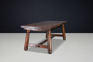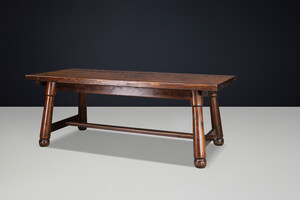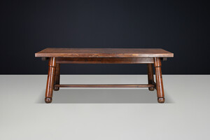 Brutalist Large french pine dining table BY MEUBLES GEORGES ROBERT, France 1950 Mid-20th century