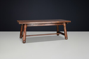 Large french pine dining table BY MEUBLES GEORGES ROBERT, France 1950School: