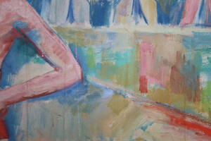 Large Modernist Oil Painting ‘Bathing Scene’ Signed Urbanek, 1963Origin: