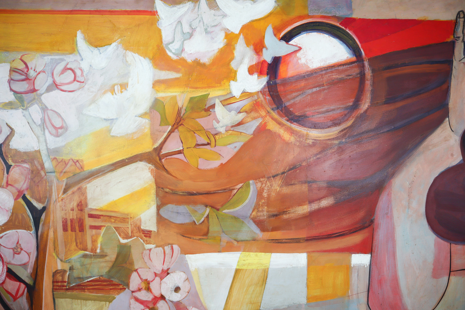 Large Social realism Mural Painting on board by walter womacka Mid-20th century